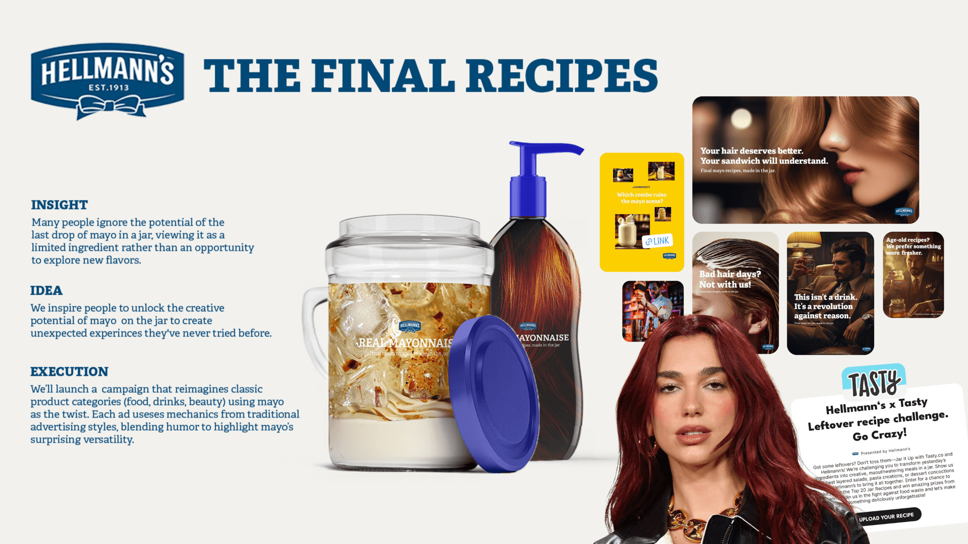 Hellmann's launches a campaign to tackle not only mayo, but also food waste. We created Final Recipes to make in a jar and no, it's not only dishes - drinks, hair products, meal prep, desserts - all made in a jar from leftover mayo and other products at home.